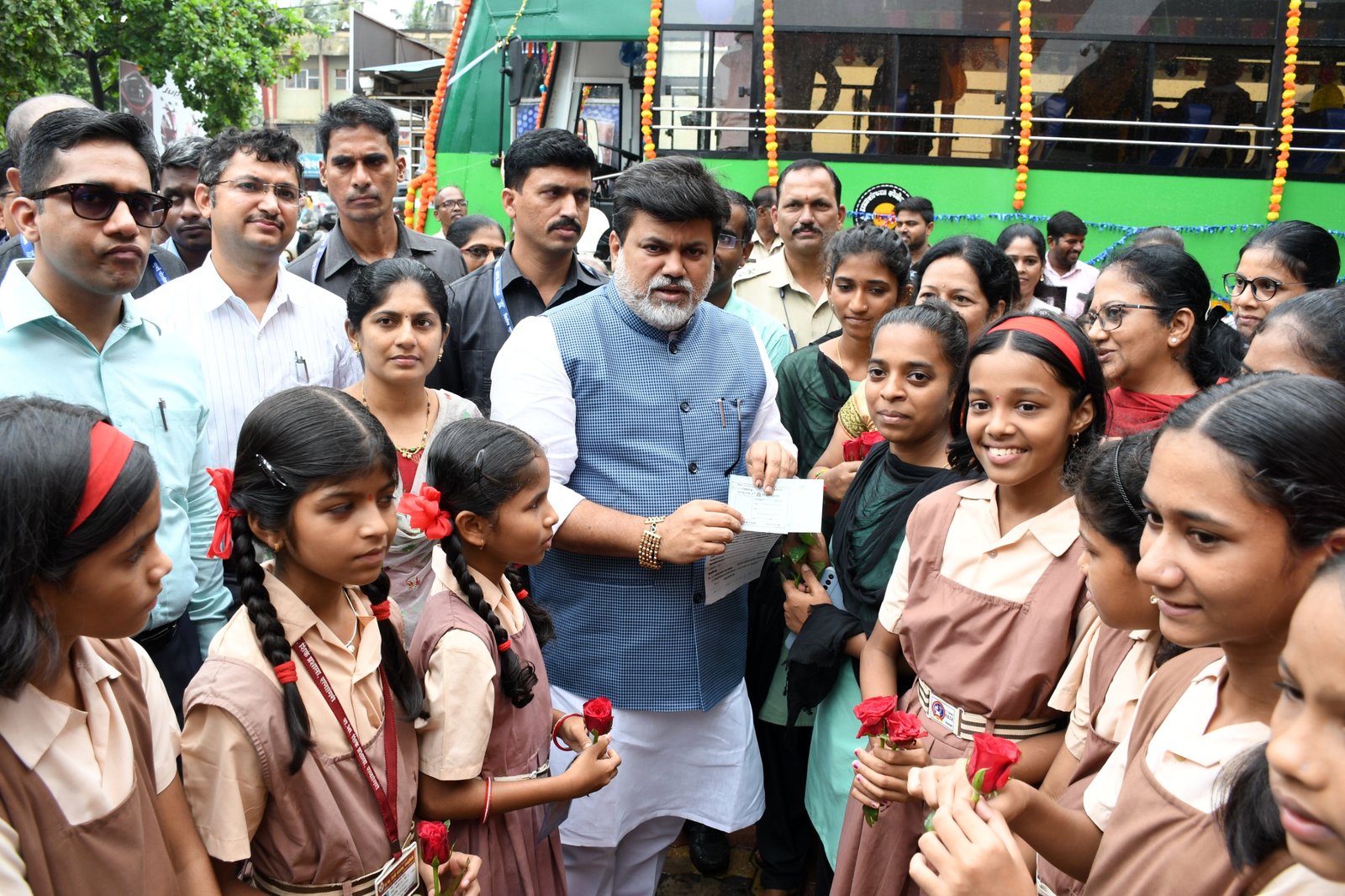 यावेळी रत्नागिरी शहरी वाहतूक बसला पालकमंत्री श्री. सामंत यांच्या हस्ते हिरवा झेंडा दाखवून व श्रीफळ वाढवून बस रवाना करण्यात आली.
