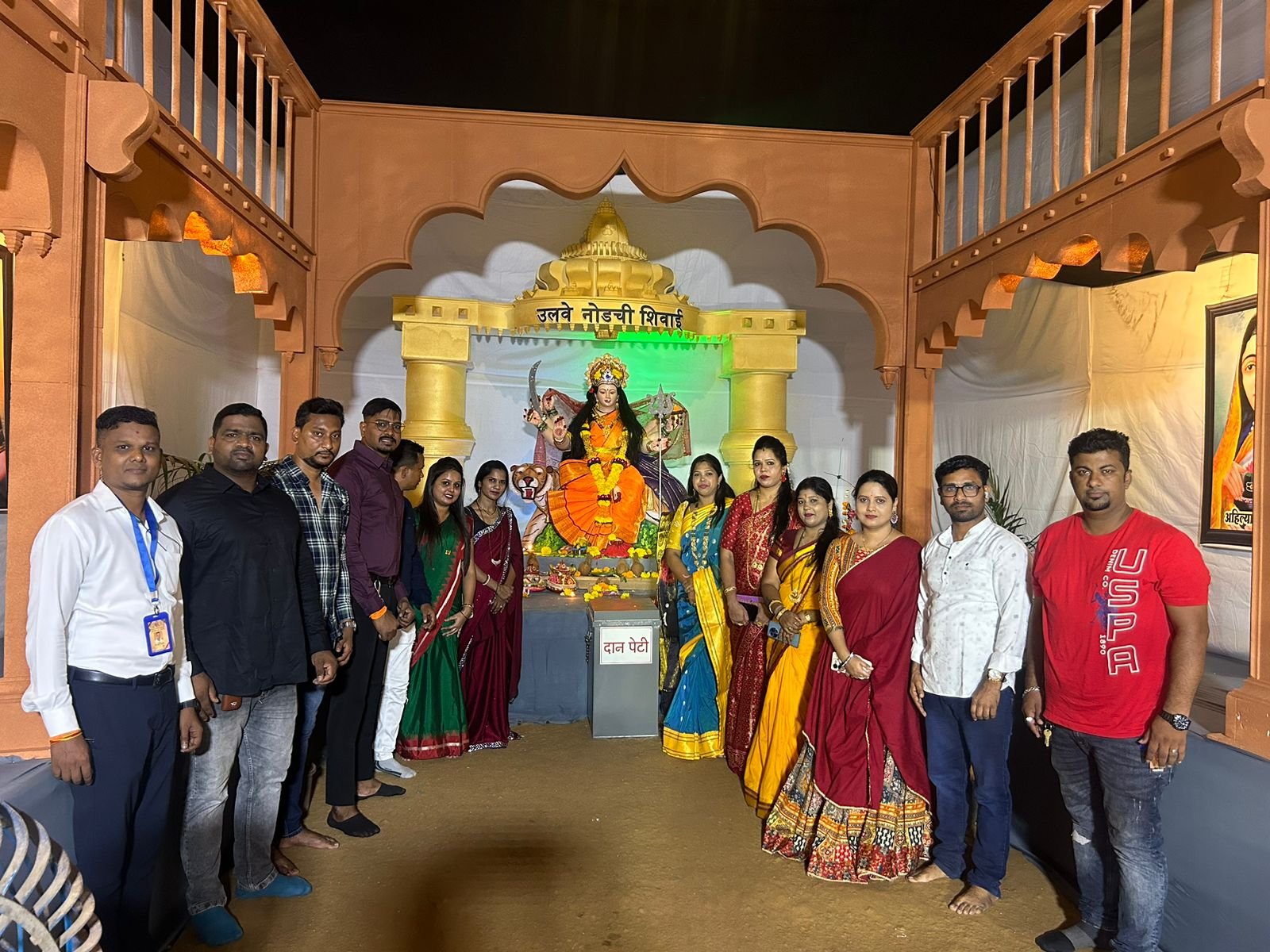 उरण (विठ्ठल ममताबादे ) : शिवाई सामाजिक सांस्कृतिक कला क्रीडा मंडळ उलवे नोड तर्फे कोपर तलाव शेजारी (शिवाई मैदान), प्लॉट नंबर ९३, सेक्टर ९, उलवे, तालुका पनवेल, जिल्हा रायगड येथे नवरात्रौत्सव मोठ्या उत्साहात साजरा करण्यात येत आहे. यंदाचे नवरात्रौत्सवचे तिसरे वर्ष असून दरवर्षीप्रमाणे यंदाही देवीचे दर्शन घेण्यासाठी भाविक भक्तांनी खूप मोठ्या प्रमाणात गर्दी केली होती. नवरात्रोत्सव निमित्त आयोजित केलेल्या चित्रकला स्पर्धा, रक्तदान शिबिर,आरोग्य शिबीर, हळदी कुंकू समारंभ,वेशभूषा स्पर्धा आदी स्पर्धांमध्ये महिला व विद्यार्थ्यांनी मोठ्या प्रमाणात सहभाग घेतला. दररोज रात्री गरबा दांडियाला मोठ्या प्रमाणात जनतेची उपस्थिती लाभत आहे.