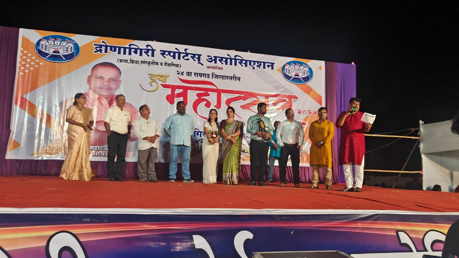 यावेळी द्रोणागिरी स्पोर्टस असोशिएशनचे संस्थापक महादेव घरत,राजमाता,राष्ट्रमाता जिजाऊ माँ साहेब यांचे वडील लखुजी जाधवराव यांचे वंशज ॲड रणजित जाधवराव,आवाज महामुंबईचा चॅनेलचे संपादक मिलिंद खारपाटील, पोलादपूर नगरपंचायतीचे नगरसेवक शिवराज पार्टे, पोलादपूर क्रिकेट असोसिएशन चे अध्यक्ष नीलेशदादा कोळसकर, नरवीर तान्हाजी मालुसरे यांचे मामा स्वराज्याचे मामा सुभेदार शेलार मामा यांचे वंशज दीपक शेलार, छत्रपती शिवाजी महाराजांच्या पायदळचे प्रमुख सरनौबत पिलाजी गोळे यांचे वंशज मनोहर गोळे, सुभेदार ज्योत्याजी केसरकर यांचे वंशज आदेश केसरकर, जेएनपीटी बंदर विभागाचे माजी ट्रस्टी एस सी मिश्रा, जेष्ठ साहित्यिक पुंडलिक म्हात्रे, रायगड जिल्हा परिषदेच्या माजी सदस्या वैशाली घरत,ब्रह्मा कुमारी उज्ज्वला दीदी आदी मान्यवर उपस्थित होते.