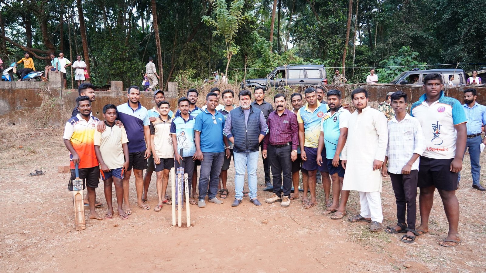 रत्नागिरी तालुक्यातील कोळंबे गावातील खेळाडूंसोबत मैदानावर फलंदाजी करीत मुलांशी संवाद साधून खेळाच्या महत्त्वाबाबत चर्चा केली.