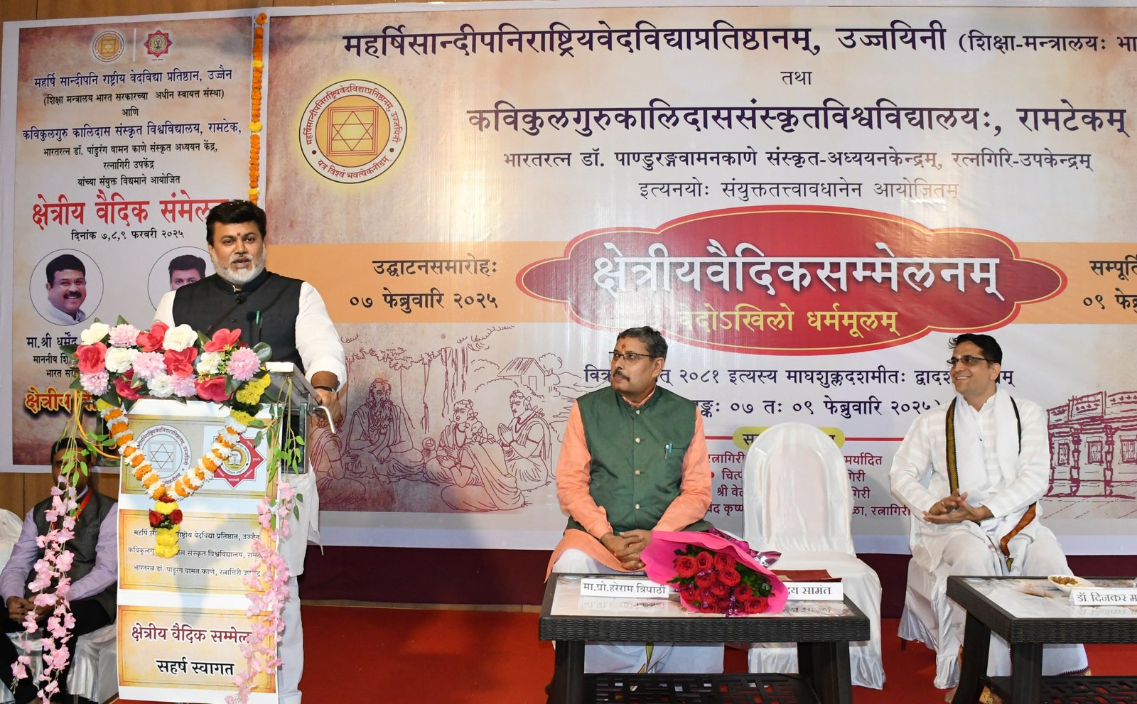कार्यक्रमाच्या सुरुवातीला पालकमंत्री डॉ. सामंत यांनी चारही वेदांना फुले वाहून त्यांचे पूजन केले तसेच भारतमाता प्रतिमा पूजनही केले. कवी कुलगुरु कालिदास संस्कृत विश्वविद्यालयाचे कुलगुरु यांच्या प्रा. त्रिपाठी यांच्या हस्ते पालकमंत्री डॉ. सामंत यांना प्रशस्तीपत्र देण्यात आले.