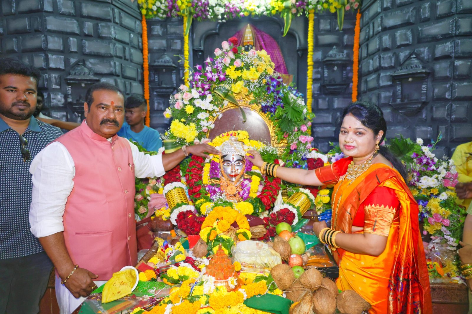 यावेळी शुभांगीताई घरत, कुणाल घरत, शेजल घरत यांनी सहकुटुंब शांतादेवीची खणानारळाने ओटी भरली आणि देवीची मनोभावे प्रार्थना केली. यावेळी महेंद्रशेठ घरत यांच्यासोबत घरत परिवार उपस्थित होता. गिरोबा देव आणि राम मंदिर, जरी मरी आई मंदिरातही ते सहपरिवार गेले होते.महेंद्रशेठ घरत यांनी गव्हाण येथील जरी मरी आई मंदिरासाठी ३ लाखांची देणगी दिली होती. त्यांच्यामुळेच मंदिराचे बांधकाम पूर्ण झाले; परंतु जरी मरी आई मंदिर उदघाटनावेळी महेंद्रशेठ घरत हे आयटीएफ बैठकीसाठी लंडनला होते. त्यामुळे आज जरी आई देवी मंदिर व्यवस्थापनातर्फे, तसेच शांतादेवी मंदिरातर्फे महेंद्रशेठ घरत यांचा यथोचित सत्कार करण्यात आला.