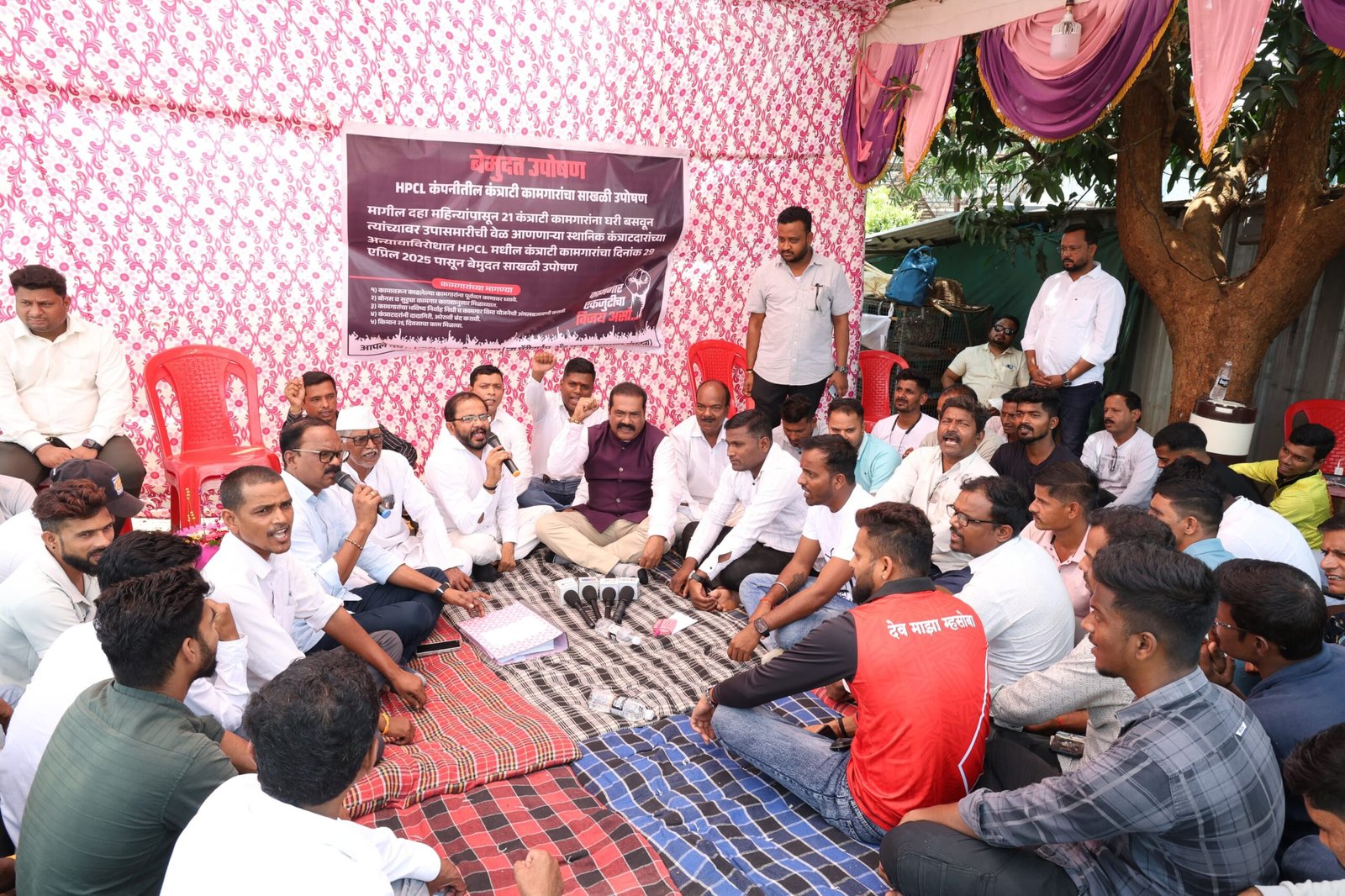 कंपनी व्यवस्थापन कंत्राटदाराला किती पैसे देते, कंत्राटदार कामगारांना किती पगार देतो, त्यात मॅनेजमेंटचा हिस्सा किती, याचा जाब विचारणे चूक नाही. त्यामुळे आपल्या न्याय हक्कांसाठी कामगारांनी संघटना बांधली असेल तर त्यात कामगारांची चूक काय, कायद्यानुसार वेतन हे मिळायलाच हवे आणि अशावेळी २१ कंत्राटी कामगारांना कामावरून कमी केले आहे, हे लाजिरवाणे आहे. गेले दहा महिने हे स्थानिक कामगार बेरोजगार आहेत, त्यांना योग्य न्याय देण्यासाठी मी सर्वोतोपरी प्रयत्न करीन.मध्यंतरी आमदार महेश बालदी यांनीही कंत्राटदारांना समज दिली होती तरीही व्यवस्थापन वा ठेकेदार मुजोरीने वागत असेल तर तुम्हाला तुमची जागा दाखवणारच, असा इशारा आंतरराष्ट्रीय कामगार नेते महेंद्रशेठ घरत यांनी यावेळी दिला.न्यू मॅरिटाईम अण्ड जनरल कामगार संघटनेच्या मार्गदर्शनाखाली स्थानिक बेरोजगार २१ कामगारांनी चार दिवसांपासून एचपीसीएलच्या गेटसमोर साखळी उपोषण सुरू केले आहे.