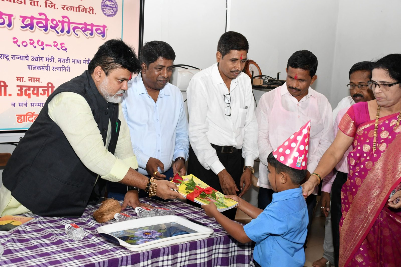 झरेवाडी येथील जिल्हा परिषद पूर्व प्राथमिक शाळेत शाळा प्रवेशोत्सव अंतर्गत उपक्रमात पालकमंत्री डाॕ सामंत यांनी पुस्तके, गणवेश आणि खाऊ देवून विद्यार्थ्यांचे स्वागत केले. यावेळी अतिरिक्त मुख्य कार्यकारी अधिकारी परिक्षित यदाव, उप मुख्य कार्यकारी अधिकारी राहुल देसाई, प्रांताधिकारी जीवन देसाई, प्राथमिक शिक्षणाधिकारी कासार, राजेश कळंबटे, महेश म्हाप आदी उपस्थित होते.