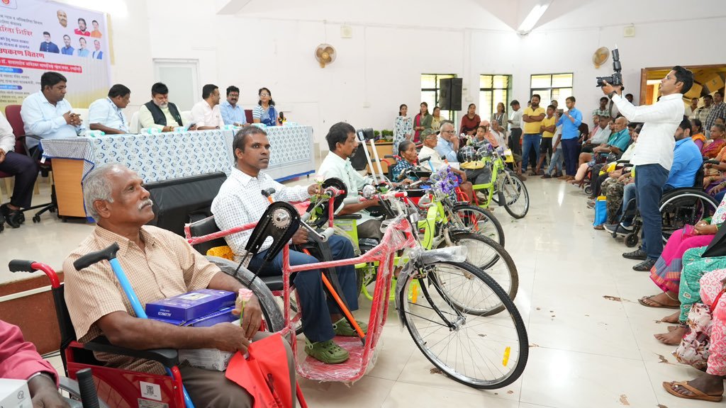 रत्नागिरी : रत्नागिरी येथे सामाजिक न्याय अधिकारिता व दिव्यांगजन सक्षक्तीकरण विभाग, भारत सरकार, सामाजिक न्याय विभाग, भारतीय कृत्रिम अंग निर्माण निगम व जिल्हा दिव्यांग पुनर्वसन विभाग यांच्यावतीने आज पालकमंत्री उदय सामंत यांच्या हस्ते दिव्यांग व ज्येष्ठ नागरिकांना त्यांच्या दैनंदिन जीवनासाठी आवश्यक साहित्याचे मोफत वाटप करण्यात आले.