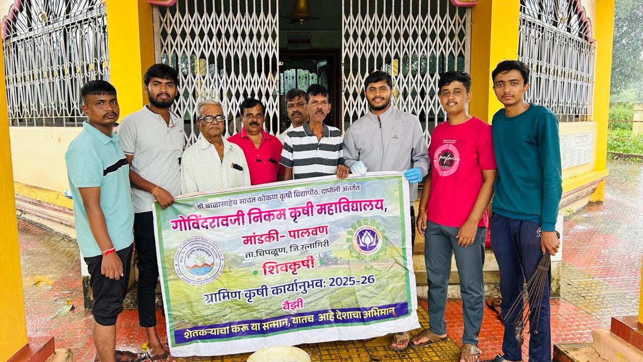 चिपळूण : गोविंदरावजी निकम कृषी महाविद्यालयाच्या कृषिभूषण डॉ.तानाजीराव चोरगे शिक्षण व संशोधन संस्थेचे मुख्य कार्यकारी अधिकारी डॉ.निखिल चोरगे , प्राचार्य संकेत कदम,जिजामाता महिला कृषी महाविद्यालयाच्या प्राचार्या डॉ.शमिका चोरगे, ग्रामीण कृषि कार्यानुभव समन्वयक प्राध्यापक प्रशांत इंगवले .शिवकृषी संघातर्फे ग्रामीण कृषी कार्यानुभव कार्यक्रम** (RAWE) अंतर्गत