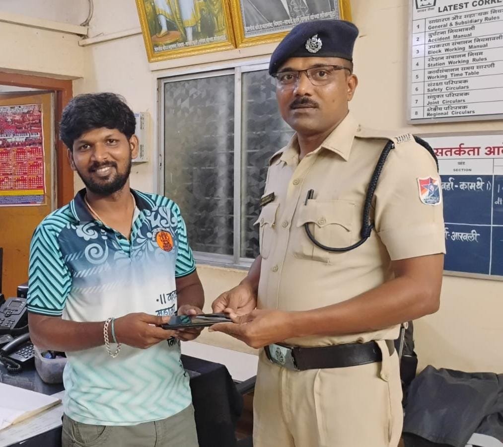 रेल्वेतून उतरत असताना ०१ सप्टेंबर २०२५ रोजी एका प्रवाशाचा मोबाईल फोन ट्रेन क्रमांक ०११५३ च्या गार्ड साईड जनरल कोचमध्ये राहिला. ही ट्रेन सावर्डा स्टेशनवर येताच, एचसी – सचिन देशमाने आणि सीटी हिरालाल मीना उपस्थित होते.