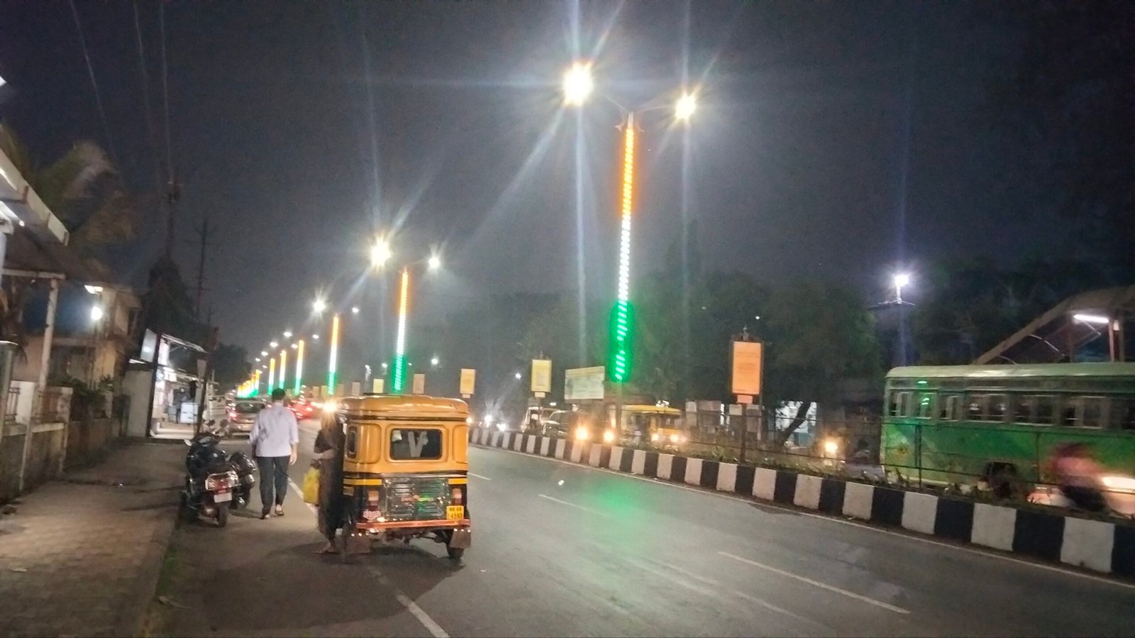 गुरुवारी संपूर्ण देशभर प्रजासत्ताक दिन साजरा होत आहे. या पार्श्वभूमीवर रत्नागिरी शहरातील मुख्य मार्गावरील दुभाजकांमध्ये असलेल्या विद्युत खांबांचे रुपडे विद्युत रोषणाईने पालटले आहे. शहरात नागरिकांमध्ये देशाप्रतीची भावना जागृत करणारी ही विद्युत रोषणाई नागरिकांचे लक्ष वेधून घेत आहे