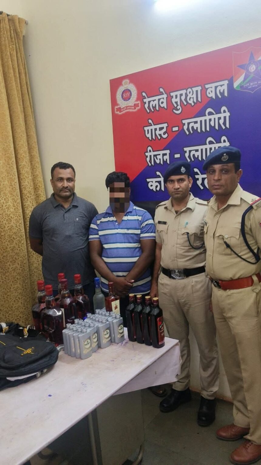 मिळालेल्या माहितीनुसार, रत्नागिरी रेल्वे स्थानकावर नियमित तपासणी (Routine Checking) सुरू असताना आरपीएफ जवानांना संशय आला. त्यांनी तुतारी एक्सप्रेसच्या एसी कोचमध्ये तपासणी केली असता, कोच अटेंडंटकडे अवैध दारूचा साठा आढळून आला. या कारवाईत एकूण ३५ दारूच्या बाटल्या जप्त करण्यात आल्या असून संबंधित कर्मचाऱ्याला ताब्यात घेण्यात आले आहे.