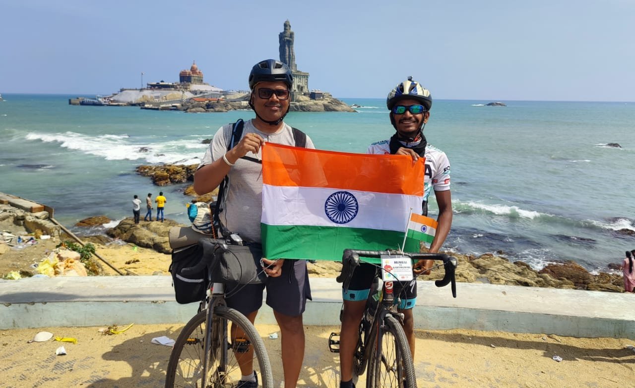 दापोली : स्वामी विवेकानंद यांनी दिलेला विश्वशांती बंधुत्व हा संदेश घेऊन दापोली सायकलिंग क्लबचे सुरज भुवड आणि सचिन पालकर यांनी मुंबई ते कन्याकुमारी असा १७५० किमीचा सायकल प्रवास १४ दिवसात पूर्ण केला आहे. त्यांनी २२ जानेवारी २०२३ रोजी मुंबईहुन सायकल प्रवास सुरु केला आणि महाराष्ट्र, गोवा, कर्नाटक, केरळ राज्यातील समुद्र किनाऱ्यावरील गावातून सायकल प्रवास करत ते ४ फेब्रुवारी २०२३ रोजी कन्याकुमारी येथे पोहोचले.