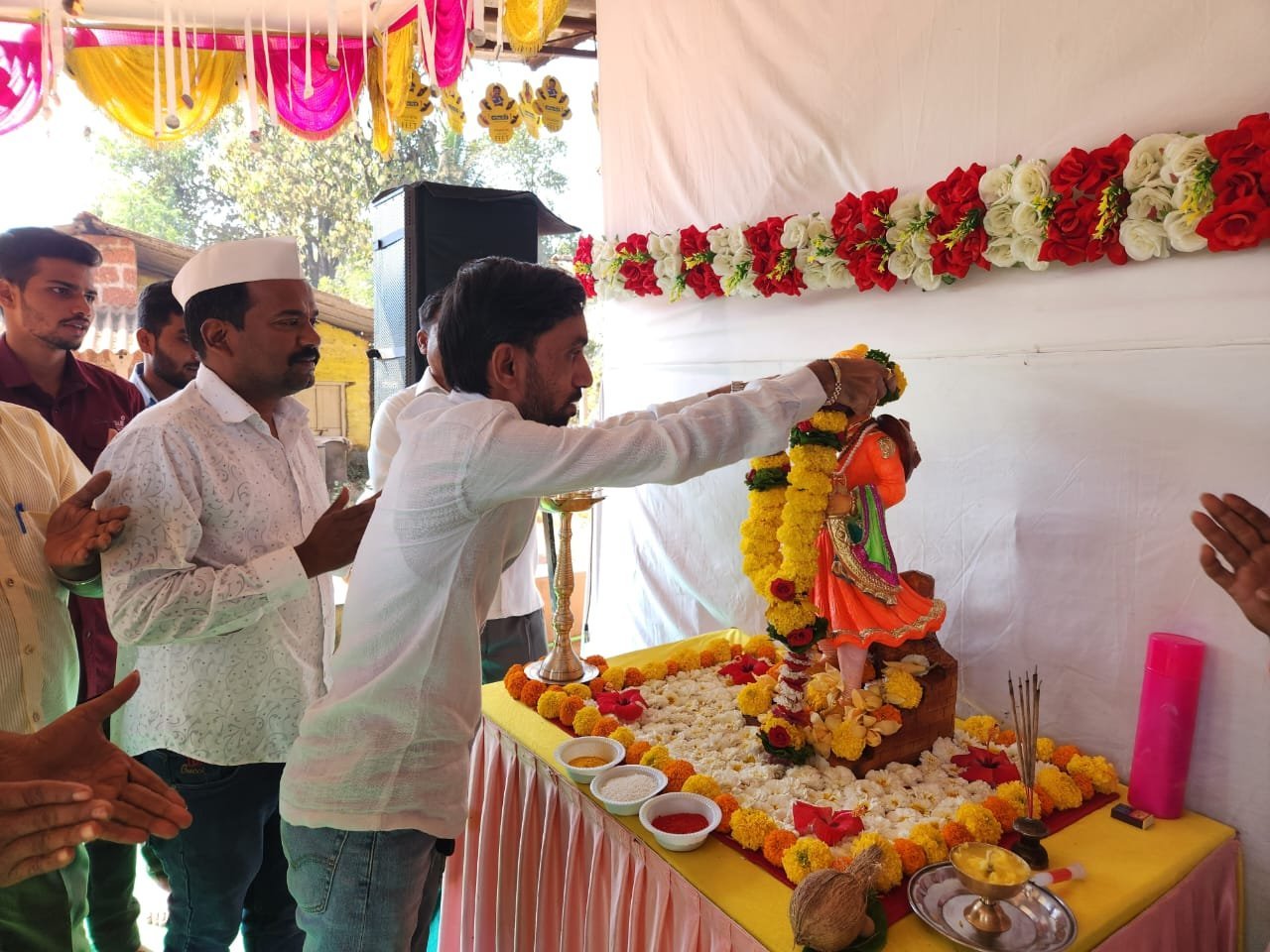 तसेच सायंकाळी छत्रपती शिवाजी महाराजांच्या प्रतिमेची वाजत गाजत मिरवणूक काढण्यात आली.