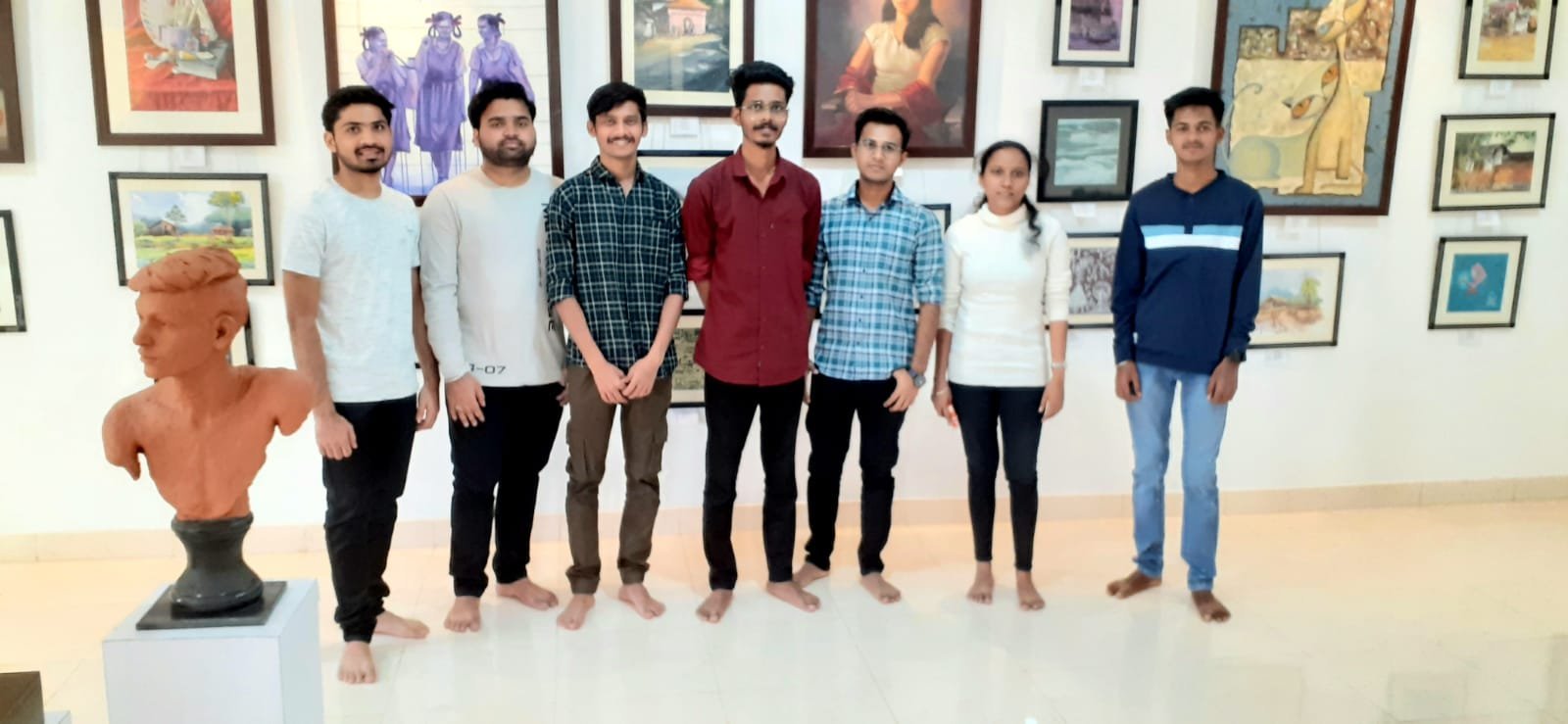 मॅक इंस्टीट्यूट पुणे येथे ॲनिमेशनचे शिक्षण घेणारे विद्यार्थी श्रीधर पाटील ( कोल्हापूर ) ,वेदांत मेडपालवार ( नांदेड) , ज्ञानेश्वर राजेगोरे ( नांदेड), नागराज पोळ ( बिजापूर , कर्नाटक ), अंकिता सुर्वे ( जयगड ), हेमंत सावंत ( संगमेश्वर ) यांनी आज संगमेश्वर येथे आले असता आवर्जून पैसा फंड कलादालनाला भेट दिली. पैसा फंडच्या कलाविभागा तर्फे या विद्यार्थ्यांचे स्वागत करण्यात आले. कलाविभागाच्या ‘ कलासाधना ‘ या उपक्रमाची सविस्तर माहिती घेऊन यातील विद्यार्थ्यांच्या कलाकृती पाहून हे विद्यार्थी अचंबित झाले. शालेय स्तरावर विद्यार्थ्यांची कला विषयातील प्रगती कला महाविद्यालयातील मूलभूत अभ्यासक्रमा एवढी असल्याचे मत यावेळी त्यांनी व्यक्त केले.