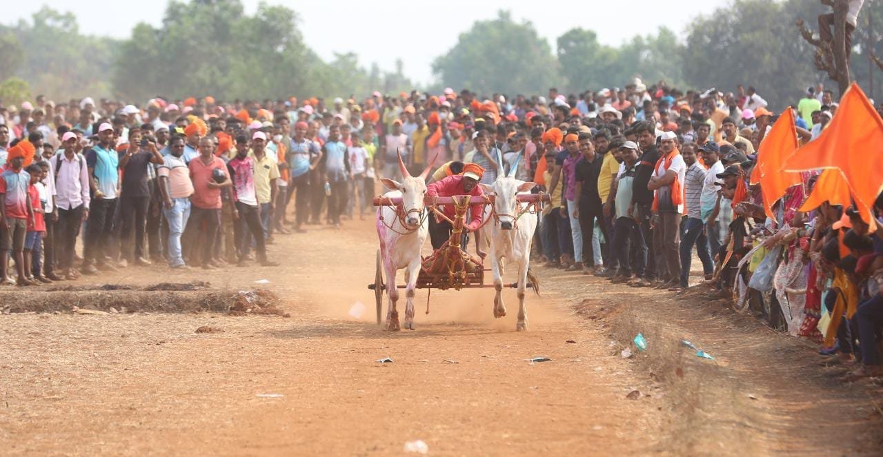 पाली येथे विनाफटका बैलगाडी स्पर्धा