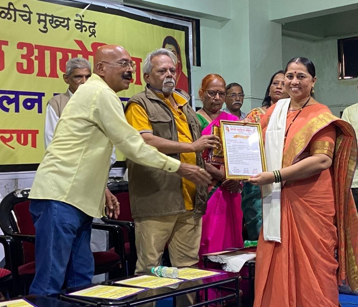 उरण दि 20 (विठ्ठल ममताबादे ) : अखिल भारतीय मराठी साहित्य चळवळीचे मुख्य केंद्र, “मराठी साहित्य मंडळ” या संस्थेतर्फे राज्यस्तरीय सावित्रीबाई फुले विद्याभूषण पुरस्कार 2023 ज्येष्ठ कवी प्रा. अशोक बागवे आणि ज्येष्ठ साहित्यिक डॉ. जयप्रकाश घुमटकर यांच्या शुभहस्ते जवाहरलाल नेहरू पोर्ट विद्यालयाच्या शिक्षिका प्रमिला संतोष पवार यांना शैक्षणिक क्षेत्रातील उल्लेखनीय कार्याबद्दल शुक्रवार दि. 19/5/2023 रोजी मराठी ग्रंथ संग्रहालय, ठाणे येथे प्रदान करण्यात आला.