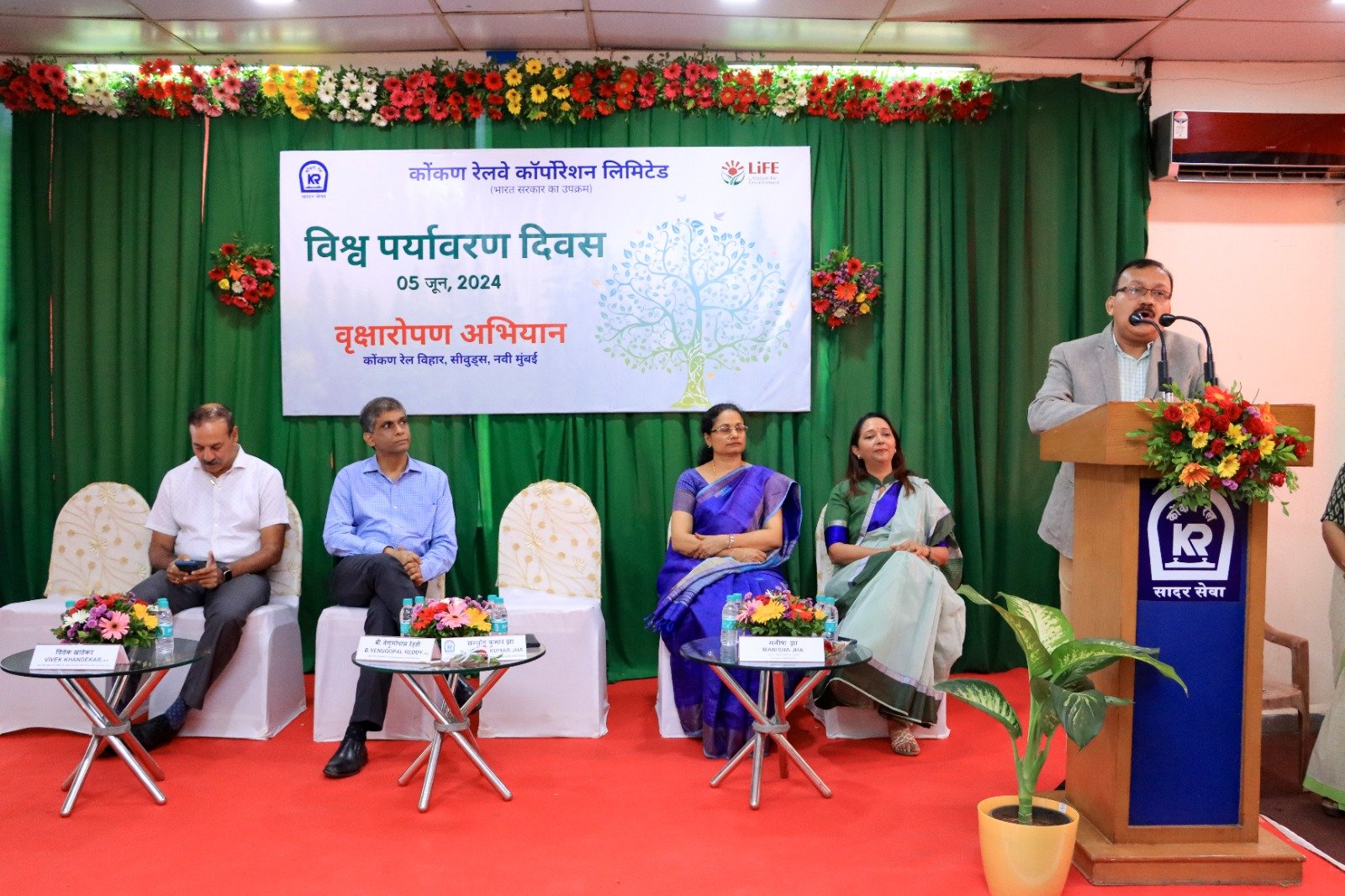 नवी मुंबई : यावर्षीचा जागतिक पर्यावरण दिन कोकण रेल्वेने अनोख्या उपक्रमांनी साजरा केला. कोकण रेल्वेने आपली कार्यालये आणि कोकण रेल्वेच्या मार्गाच्या परिसरात तब्बल 5हजार झाडे लावण्याचा संकल्प केला. कोकण रेल्वेच्या या उपक्रमाची सुरुवात कोकण रेल्वेचे व्यवस्थापकीय संचालक संतोष कुमार झा व वन विभागाचे प्रधान सचिव बी. वेणुगोपाल रेड्डी यांच्या उपस्थितीत झाली.