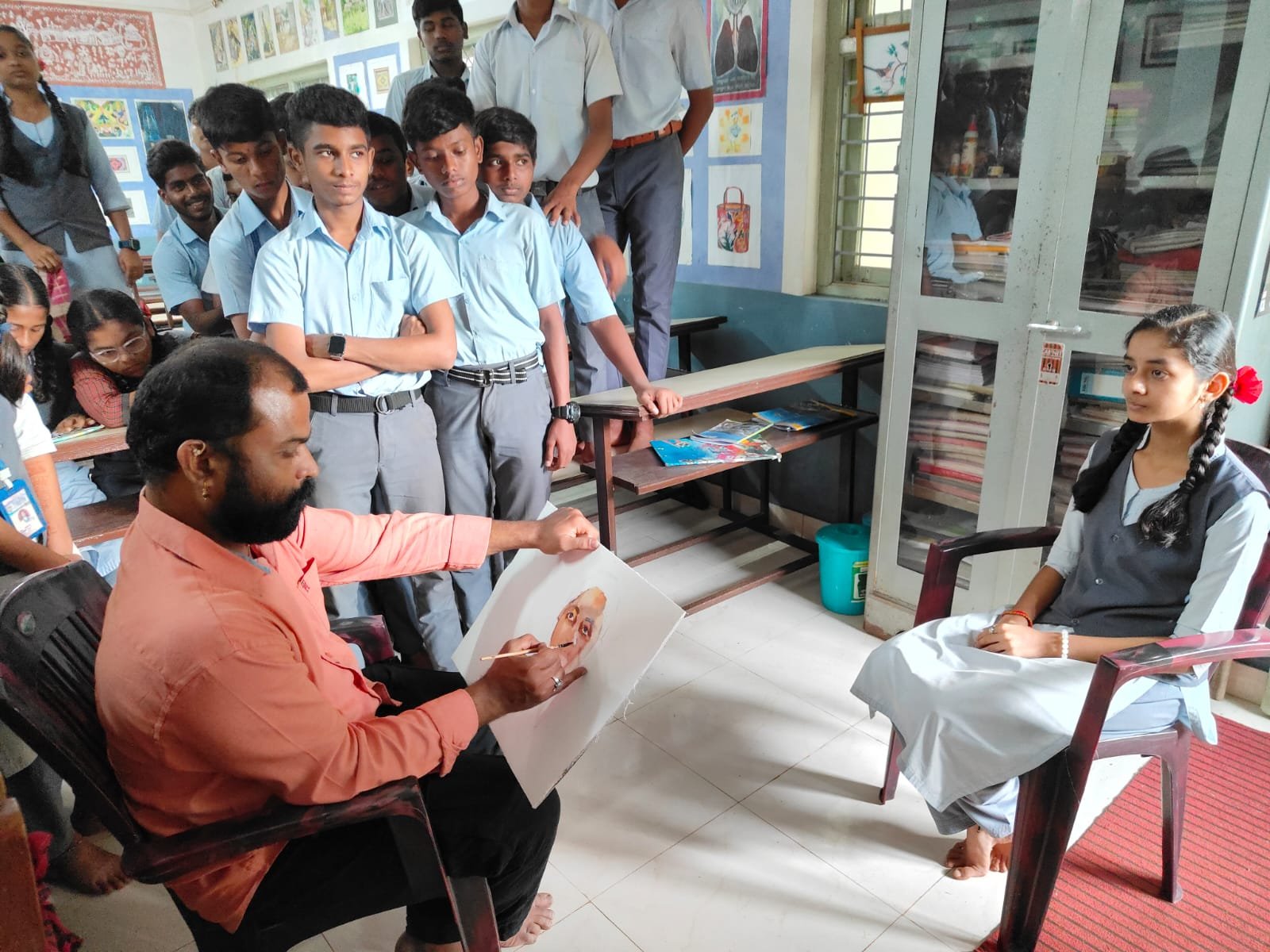 संगमेश्वरच्या पैसा फंड प्रशालेत व्यक्ती चित्राचे प्रात्यक्षिक