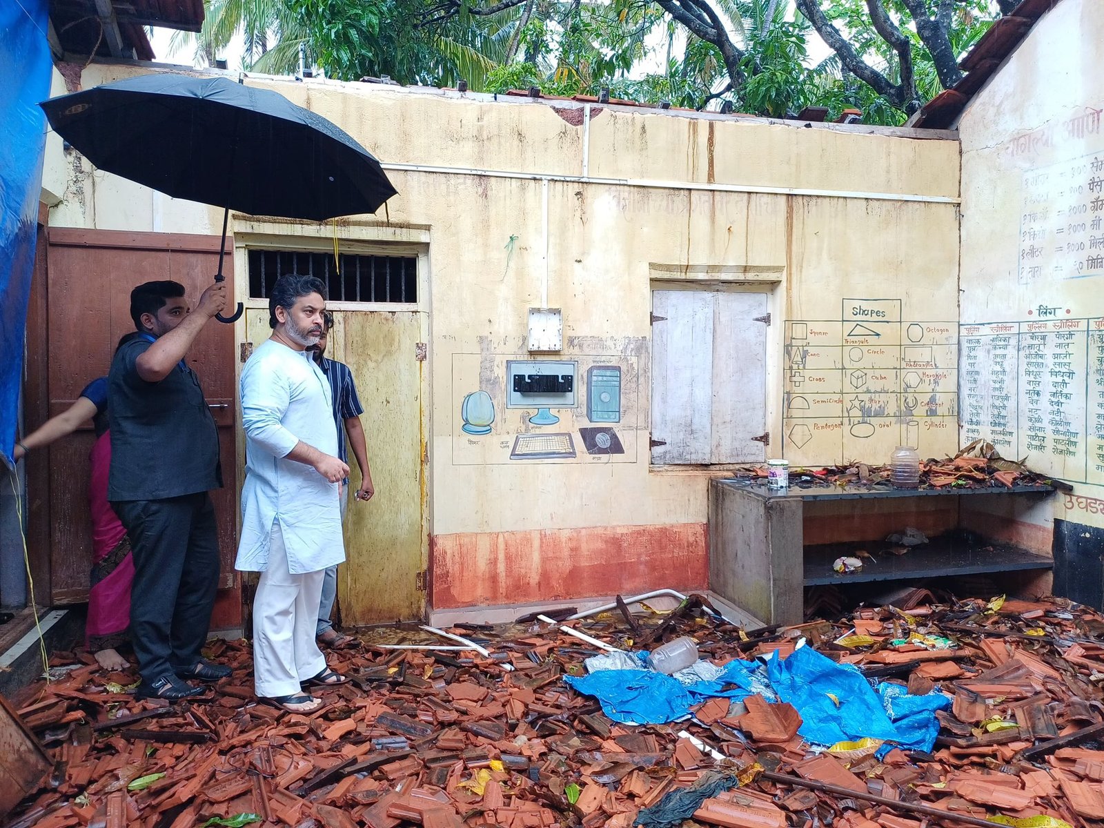 छप्पर कोसळलेल्या कांदळगाव शाळेला माजी खासदार नीलेश राणे यांची भेट