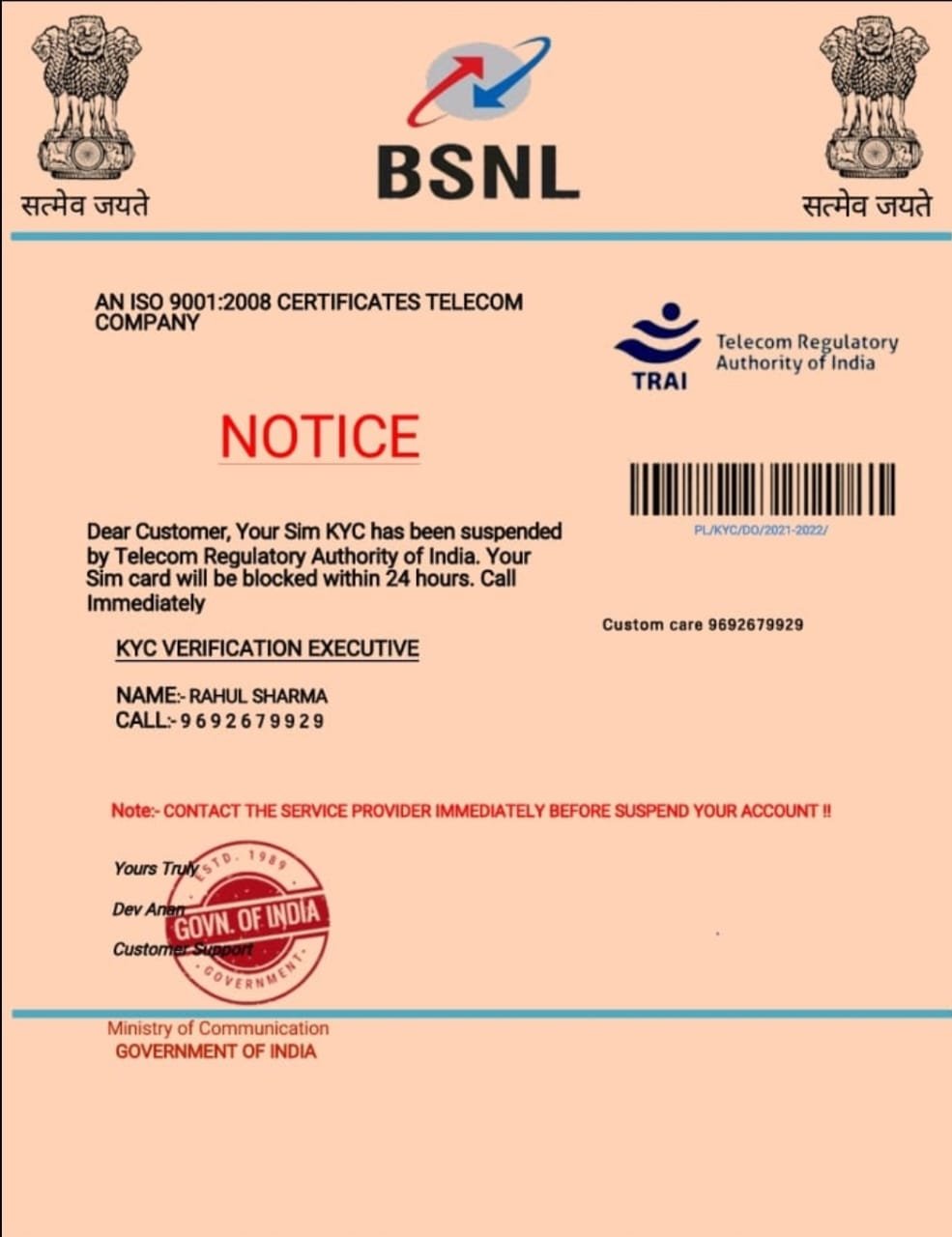 सावधान ! बीएसएनएलच्या नावाने सीम ब्लॉक करण्याचे येत आहेत फोन, मेसेज आणि नोटीससुध्दा