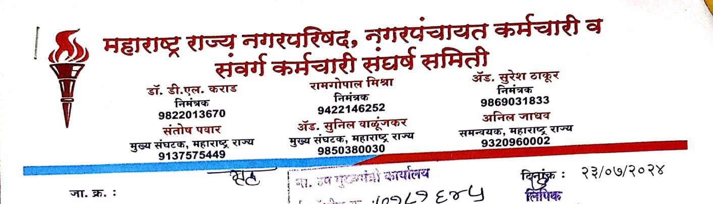 न.प./ न.पं. कर्मचारी संवर्ग कर्मचारी संघर्ष समितीचे राज्यात ६ ऑगस्टपासून बेमुदत काम बंद आंदोलन