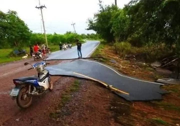 खड्ड्यांना कंटाळला रस्ता आणि स्वतःच बाजूला झाला!