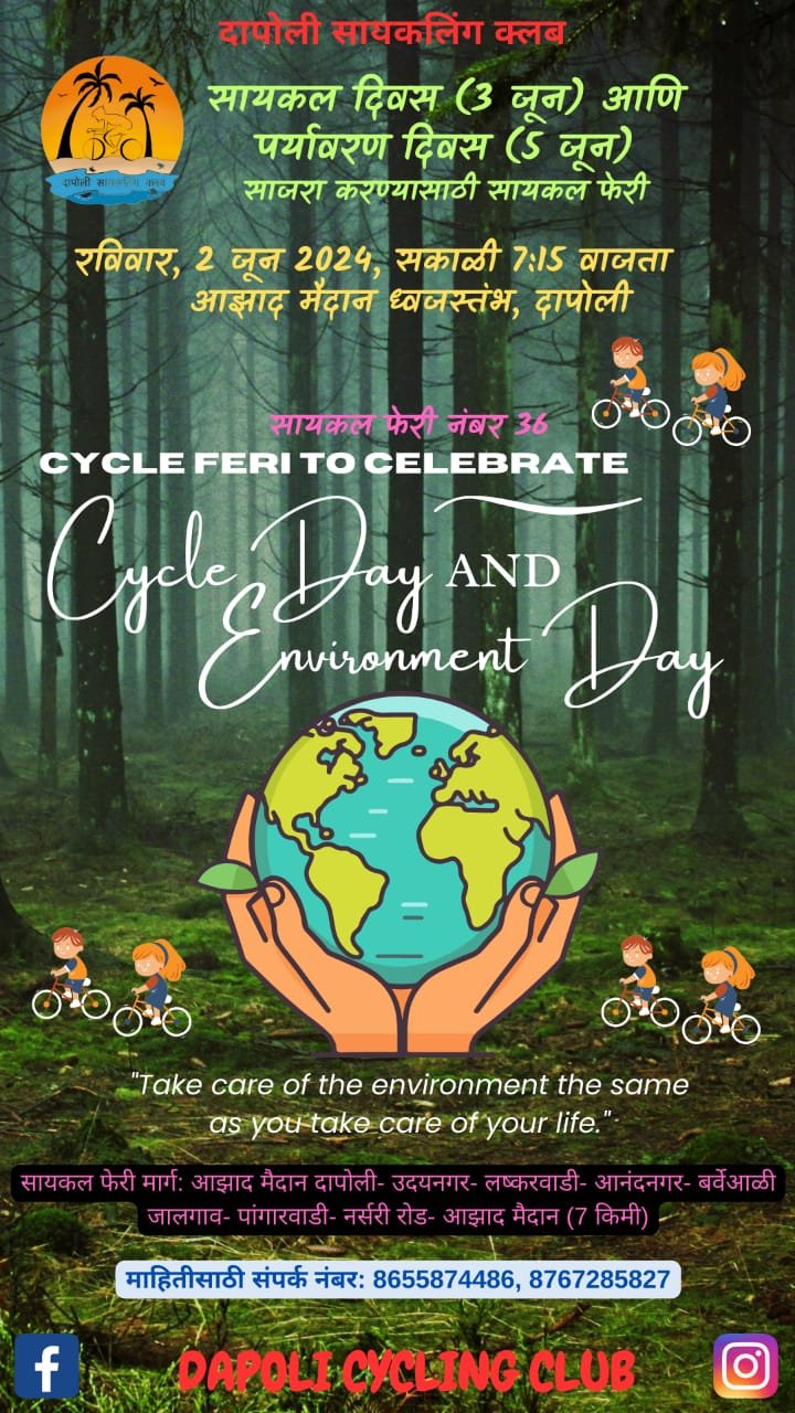 दापोली : दरवर्षी ३ जून जागतिक सायकल दिवस आणि ५ जून जागतिक…
