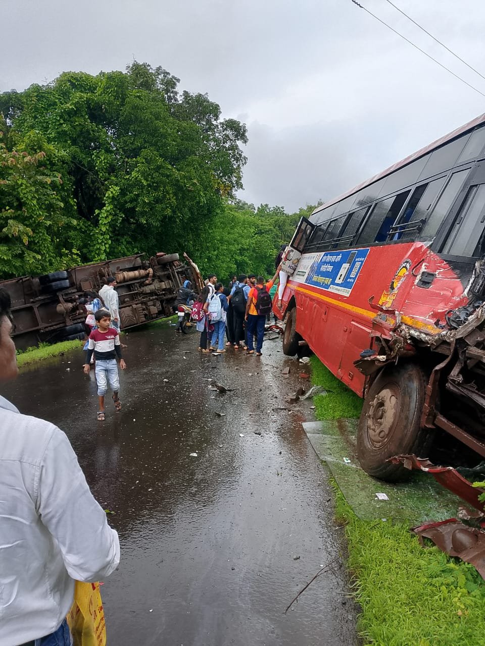 ओणी-पाचल मार्गावर एसटी बस-टेम्पोच्या अपघातात चालकासह चौघे जखमी