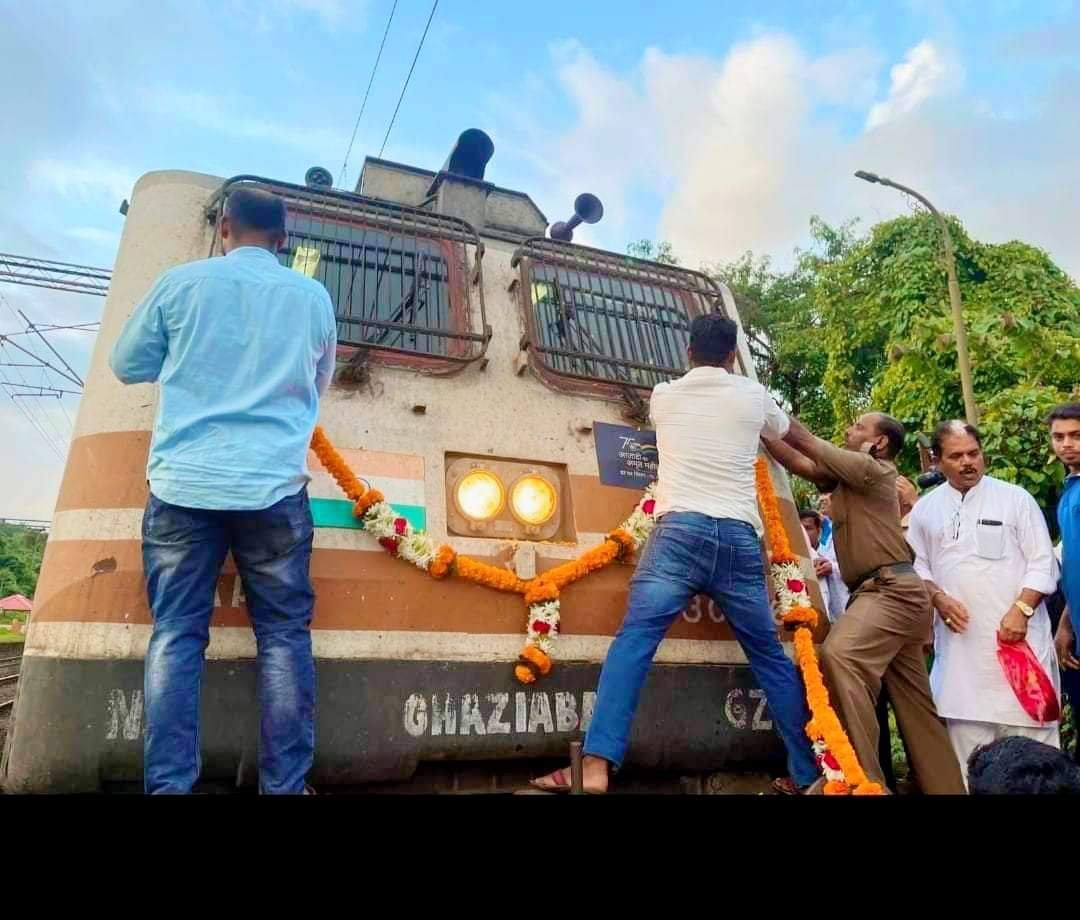 थांबा मिळाल्यावर पहिल्यांदाच थांबलेल्या नेत्रावती एक्सप्रेसचे संगमेश्वर स्थानकात स्वागत!