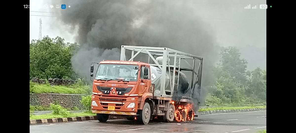 Mumbai Goa highway | महामार्गावर केमिकलवाहू टँकरच्या आगीचा थरार; वाहतूक एका लेनवरून वळवली