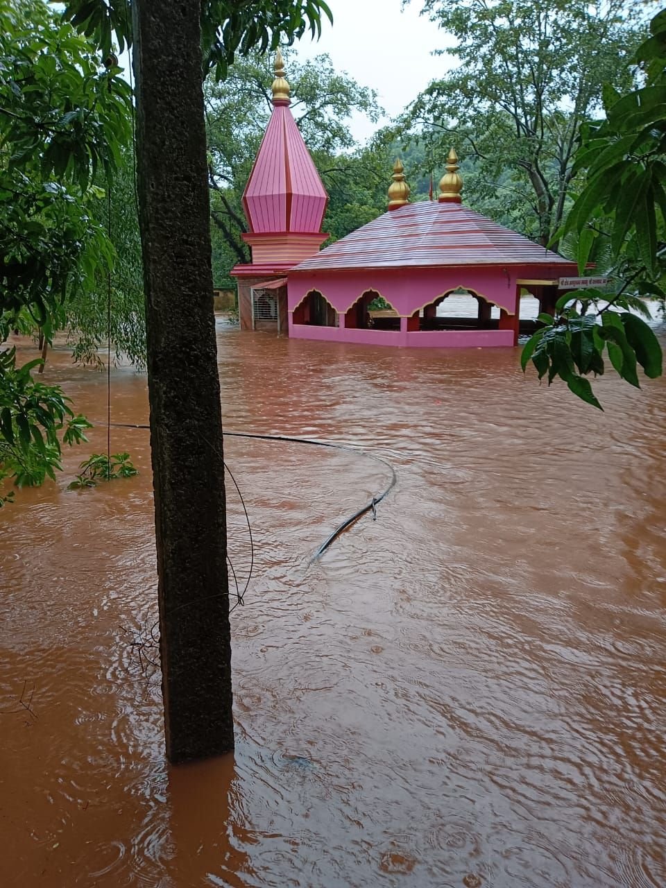 लांजा तालुक्याला मुसळधार पावसाने झोडपले ; काजळी नदीच्या पुराचा मंदिराला वेढा