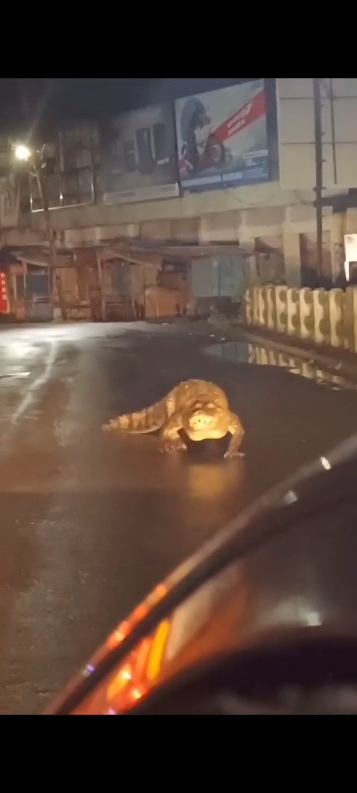 चिपळूणच्या चिंचनाक्यात भर रस्त्यावर अवतरली भलीमोठी मगर!