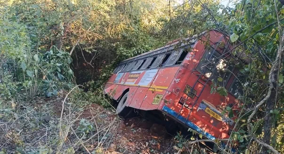 मंडणगड तालुक्यात नियंत्रण सुटलेली एसटी बस ५० फूट खोल दरीत कोसळली