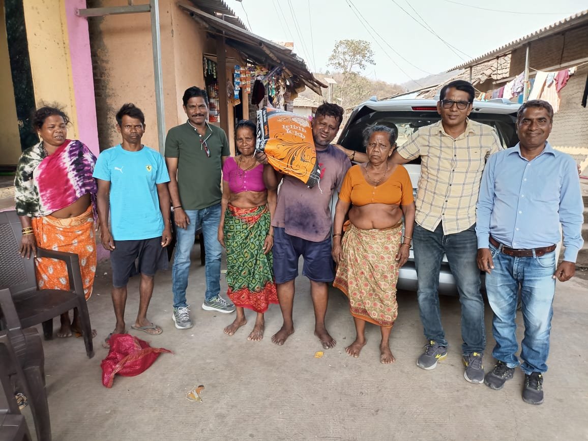 सामाजिक कार्यकर्ते राजू मुंबईकर यांच्यातर्फे होळीनिमित्त आदिवासी बांधवांना अन्नधान्य वाटप