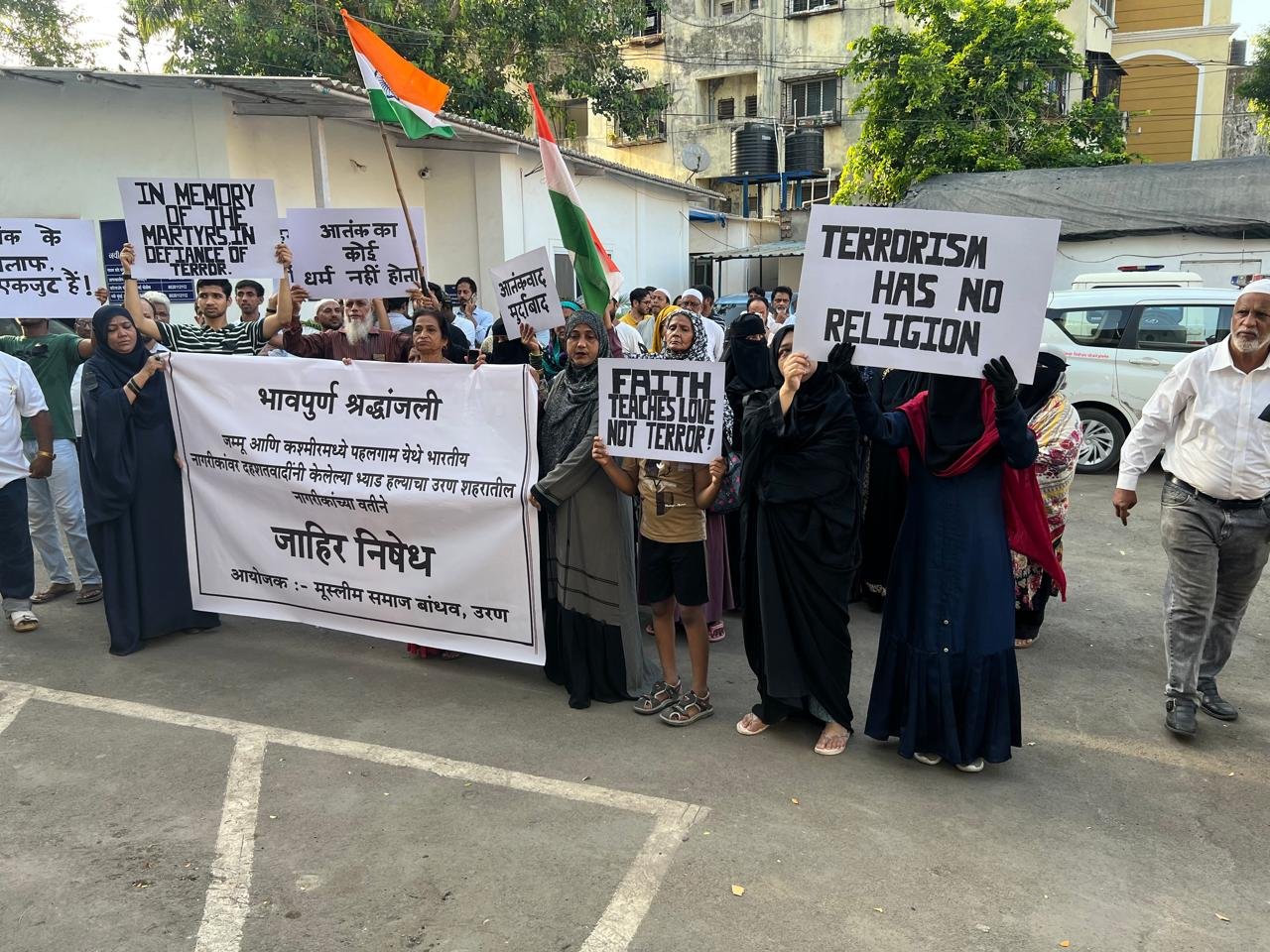 उरणमधील मुस्लिम बांधवांतर्फे पहलगाम दहशतवादी हल्ल्याचा रॅलीद्वारे निषेध