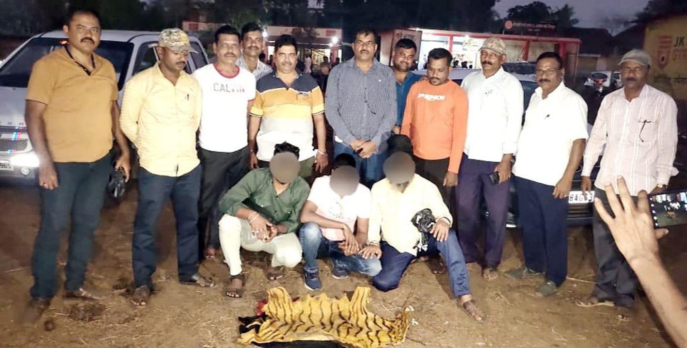 चिपळुणात पट्टेरी वाघाच्या कातड्यासह तिघांना सापळा लावून पकडले