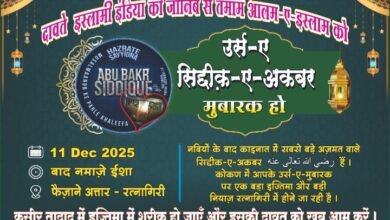 रत्नागिरी : दावते इस्लामी (Dawat-e-Islami) शाखा रत्नागिरी यांच्या वतीने कोकणनगर, फैजाने अत्तार (Faizan-e-Attar) येथे भव्य तालुकास्तरीय इज्तिमा (Taluka Level Ijtima)…