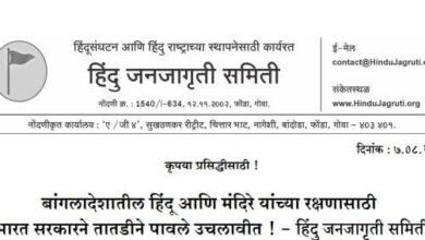 बांगलादेशातील हिंदू आणि मंदिरे यांच्या रक्षणासाठी भारत सरकारने तातडीने पावले उचलावीत : हिंदू जनजागृती समिती
