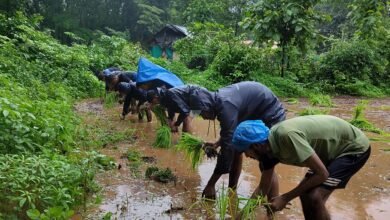 कृषिविश्व कृषिदूत संघाकडून कुटरे येथे चारसूत्री पद्धतीने भात लागवडीचे प्रात्यक्षिक