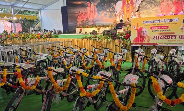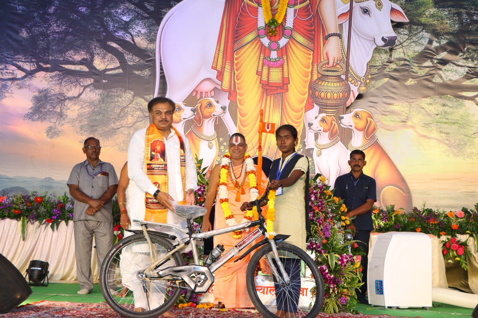जगद्गुरू नरेंद्राचार्य यांच्या प्रेरणेतून विद्यार्थ्यांना ८० सायकलींचे वाटप