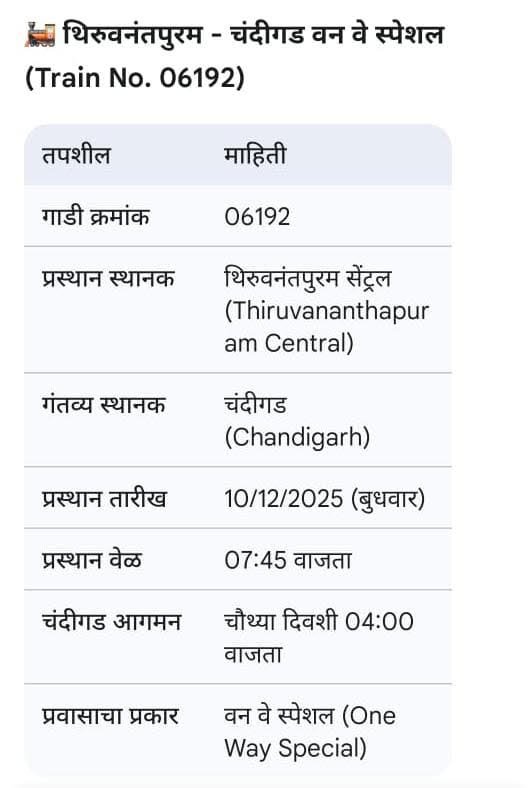 या विशेष गाडीचे सविस्तर थांबे आणि वेळापत्रक (halts and timings) पाहण्यासाठी कृपया भारतीय रेल्वेच्या अधिकृत संकेतस्थळ www.enquiry.indianrail.gov.in ला भेट द्या