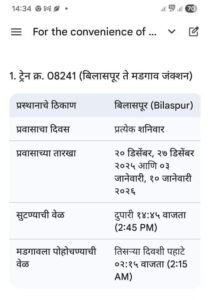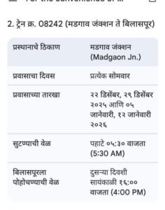 - विलासपुर ते मडगाव मार्गावर विशेष फेरीचे नियोजन
